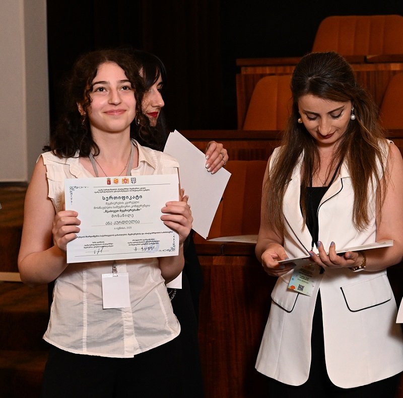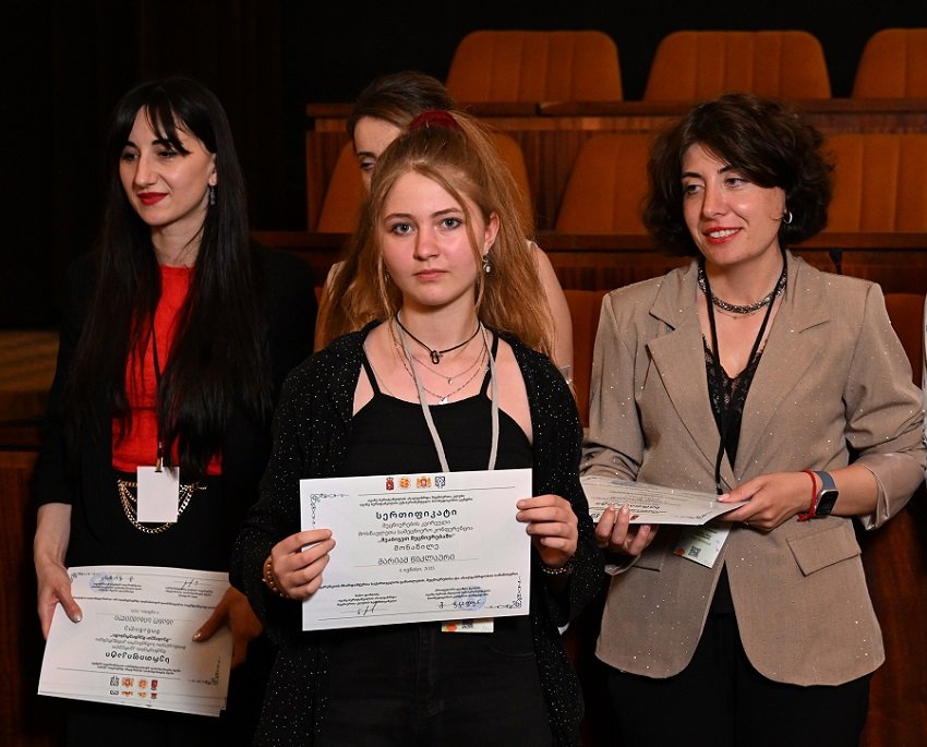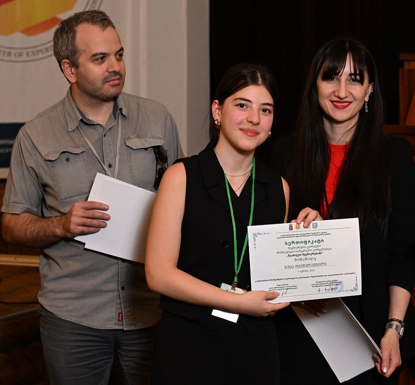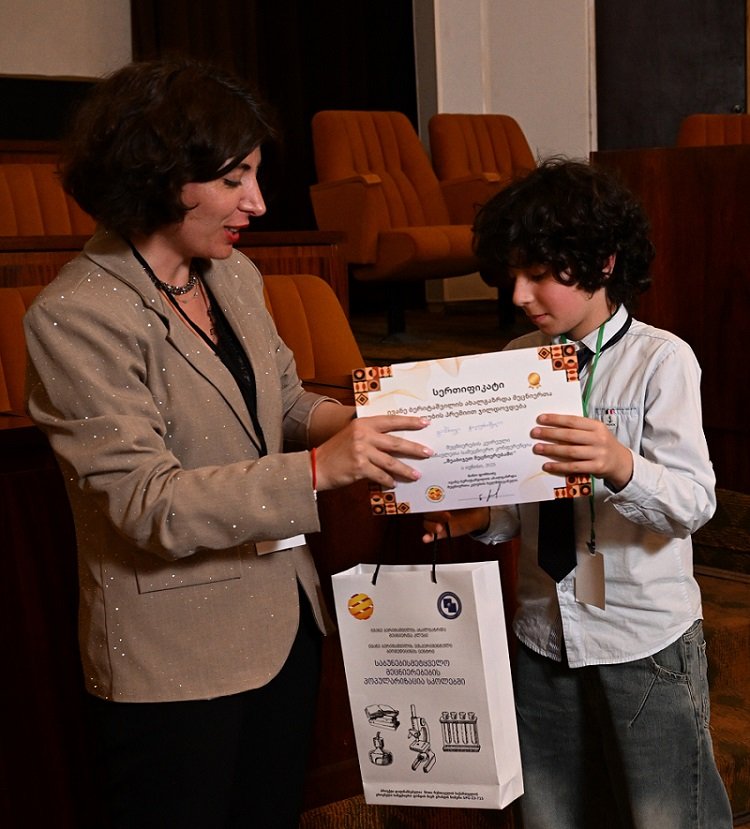 მოსწავლეთა სამეცნიერო კონფერენცია „შეაბიჯეთ მეცნიერებაში“-ის ფარგლებში საუკეთესო ზეპირი მოხსნებისა და პოსტერი პრეზენტაციის ავტორები დაჯილდოვდნენ ანი ზაალიშვილის სახელობის პრემიით და შესაბამისი სერტიფიკატით.